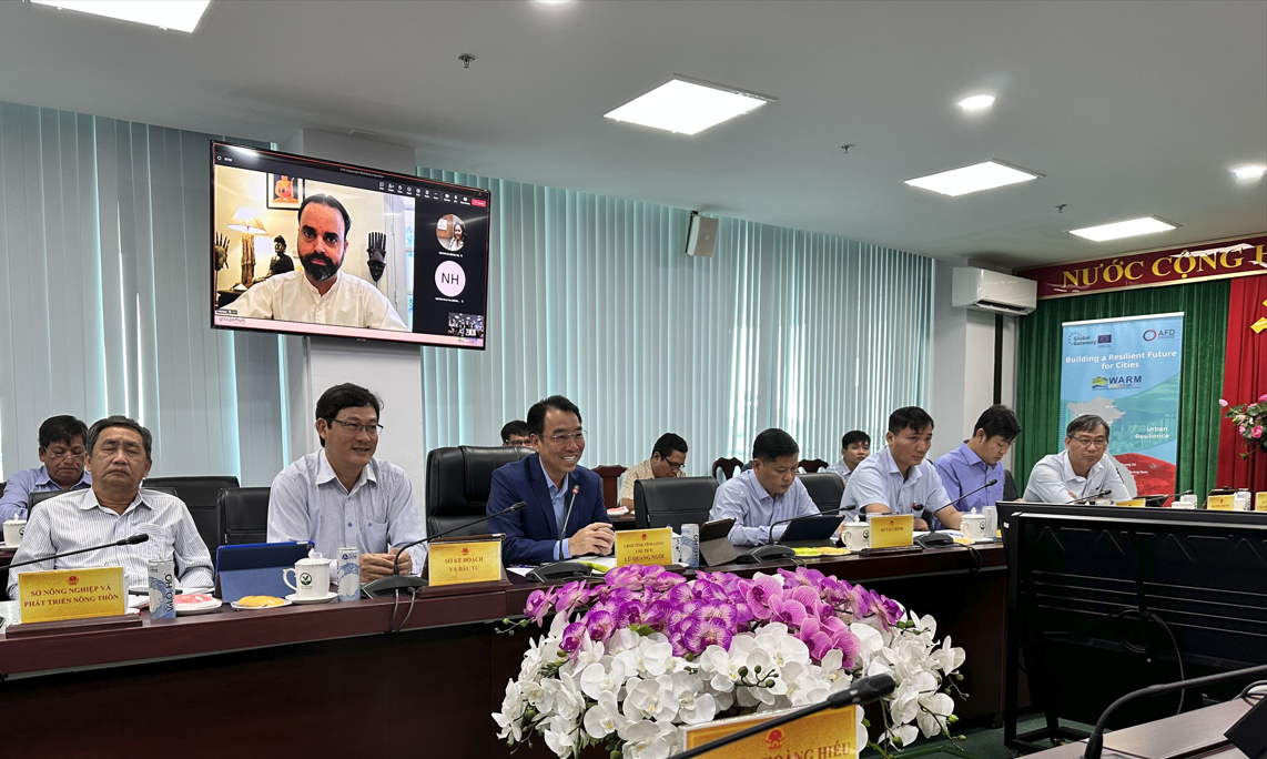 Đại diện các Sở, ban, ngành, địa phương tỉnh Vĩnh Long thông tin thêm về những vấn đề AFD quan tâm như các giải pháp phục hồi sinh kế cho hộ dân bị ảnh hưởng bởi dự án, các giải pháp thiết kế nhằm bảo tồn và đảm bảo cây xanh tại công trình, tính kết nối và đồng bộ với hệ thống hạ tầng thủy lợi khu vực dự án, các giải pháp lâu dài để nâng cao hiệu quả việc vận hành hệ thống các công trình thủy lợi và nông nghiệp trên địa bàn tỉnh, việc trượt giá đồng EURO đối với đồng Việt Nam