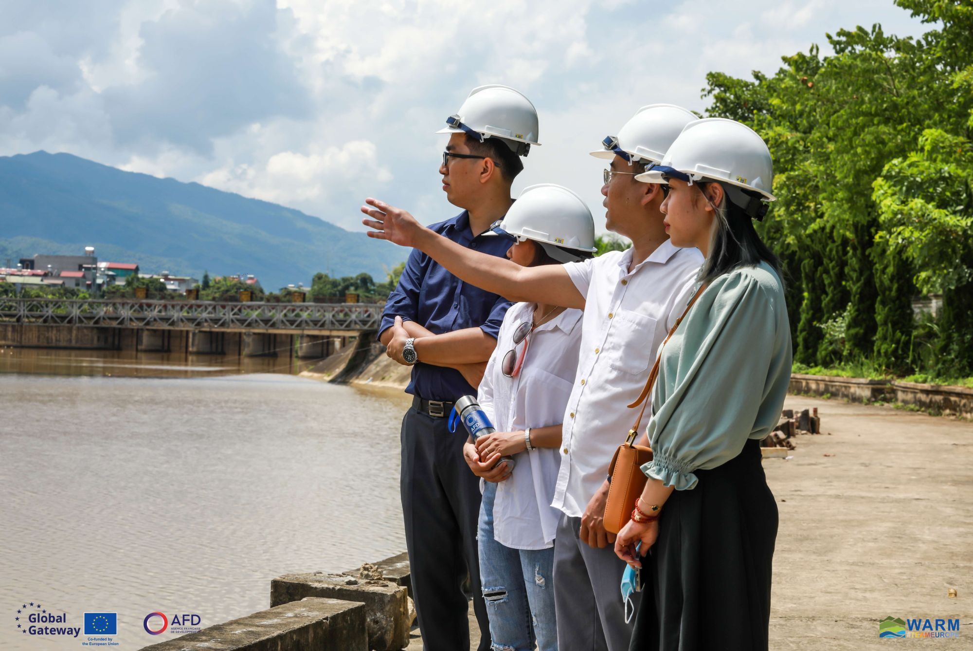 Các cán bộ dự án khảo sát khu vực đập sông Nậm Rốm, nơi sẽ được cải tạo để giúp người dân ứng phó với lũ lụt.